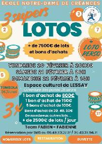 L'école Notre Dame de Créances organise un week-end loto doté de plus de 7500€ sur trois jours (voir flyer)